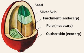 The Coffee cherry is a complex fruit made up of different parts, eventually arriving all the way to the green coffee bean that is utilized for brewing coffee.