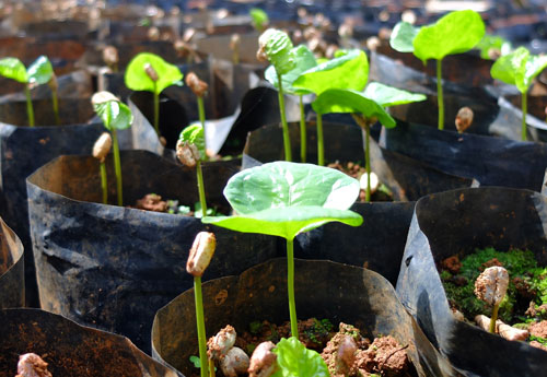 Planting normally takes place during the raining season, so the earth it is planted in remains wet and soft while the plant’s roots get firmly set. It usually takes up to 4 years before a new planted coffee tre starts baring fruits (Coffee Cherry).